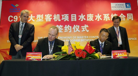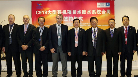 中國經(jīng)濟(jì)網(wǎng)訊 2012年7月9日范堡羅航展開幕當(dāng)天,中國商飛公司在航展現(xiàn)場(chǎng)就C919大型客機(jī)項(xiàng)目與美國蒙諾格公司(Monogram)簽署水/廢水系統(tǒng)采購合同。這表明C919大型客機(jī)項(xiàng)目工程發(fā)展階段工作正全面展開。