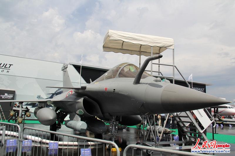 法國陣風B型戰機掛彈展出,爭取國際用戶。人民網記者崔悅攝