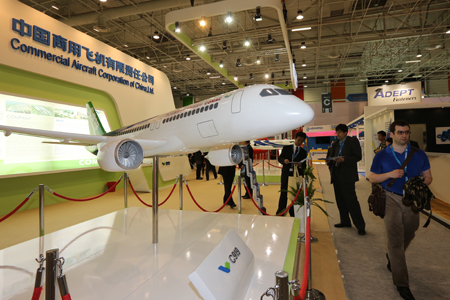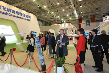 中國(guó)經(jīng)濟(jì)網(wǎng)航空6月18日訊 2013年6月17日,第五十屆巴黎國(guó)際航空航天展覽會(huì)在法國(guó)巴黎開幕,中國(guó)商飛公司攜C919大型客機(jī)模型、ARJ21-700飛機(jī)模型參加本屆航展,全面展示C919大型客機(jī)和ARJ21-700飛機(jī)研制進(jìn)展。董事長(zhǎng)金壯龍率團(tuán)參加本屆航展、副董事長(zhǎng)滕一龍、總會(huì)計(jì)師田民參加航展相關(guān)活動(dòng)。 航展期間,金壯龍、滕一龍和田民等參觀了賽峰集團(tuán)、MOOG公司、中航工業(yè)、愛勵(lì)國(guó)際、CFM公司等參展商展臺(tái),并與各公司管理層就加強(qiáng)合作進(jìn)行了深入的會(huì)談。