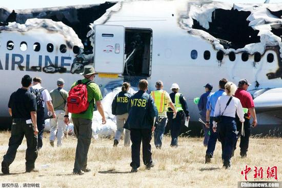 當地時間7月7日,美國國家運輸安全委員會(NTSB)在韓亞航空214航班墜機現場開展調查工作。
