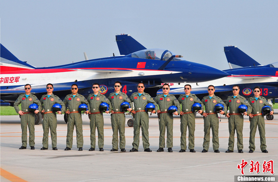 8月26日,中國空軍八一飛行表演隊在莫斯科拉緬斯科耶機場展開航展前的檢驗性飛行,當(dāng)日,中國空軍在莫斯科宣布,從8月30日至9月1日,八一飛行表演隊將在第十一屆莫斯科航展上進行3場飛行表演,準備了三個表演方案、21個動作。每場實施哪個飛行表演方案,將視當(dāng)天氣象條件而定。備受關(guān)注的是,中國空軍同時披露了在莫斯科上空飛舞的11位飛行員名錄和角色,向國際友人介紹這些“藍天舞者”的風(fēng)格與風(fēng)采。圖為11名飛行員合影照片。中新社發(fā) 申進科 攝