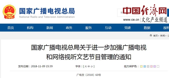 國家廣播電視總局關于進一步加強廣播電視和網(wǎng)絡視聽文藝節(jié)目管理的通知