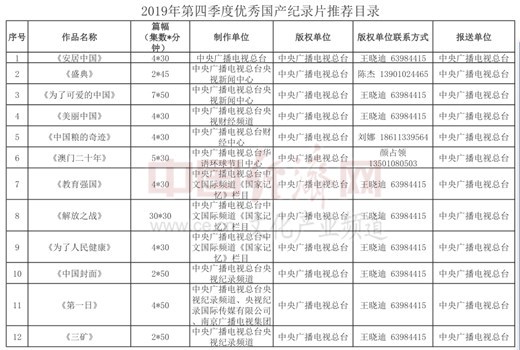 經(jīng)濟(jì)日報(bào)-中國經(jīng)濟(jì)網(wǎng)北京5月25日訊 近日,國家廣播電視總局辦公廳公布《2019年第四季度優(yōu)秀國產(chǎn)紀(jì)錄片推薦目錄》,經(jīng)全國選送、評委網(wǎng)上審聽審看、填寫投票表并簽字等過程后,《安居中國》等87部作品從報(bào)送單位參與選送的272部紀(jì)錄片中脫穎而出,入選2019年第四季度優(yōu)秀國產(chǎn)紀(jì)錄片。中央廣播電視總臺(tái)、北京市廣播電視局、上海市廣播電視局等報(bào)送單位入選作品數(shù)量位居前列。