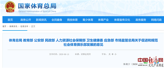 國家體育總局等八部門聯合發文促進和規范社會體育俱樂部發展