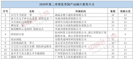 據(jù)經(jīng)濟(jì)日報-中國經(jīng)濟(jì)網(wǎng)記者了解,此次入選的國產(chǎn)動畫片集數(shù)最長26集,最短1集。根據(jù)相關(guān)通知,入選2020年第二季度優(yōu)秀國產(chǎn)動畫片推薦片目的12部作品將優(yōu)先安排在全國各級電視臺上星綜合頻道、動畫少兒頻道、地面少兒頻道播出。