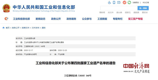 經(jīng)濟(jì)日?qǐng)?bào)-中國(guó)經(jīng)濟(jì)網(wǎng)北京12月25日訊 記者從工業(yè)和信息化部獲悉,為加強(qiáng)文化遺產(chǎn)保護(hù)傳承,推動(dòng)工業(yè)遺產(chǎn)保護(hù)利用,工業(yè)和信息化部日前正式確定了第四批國(guó)家工業(yè)遺產(chǎn)名單,62家單位入選其中。