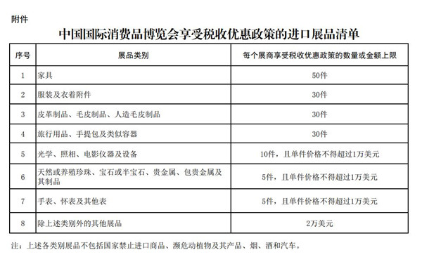 附件:中國國際消費品博覽會享受稅收優(yōu)惠政策的進(jìn)口展品清單