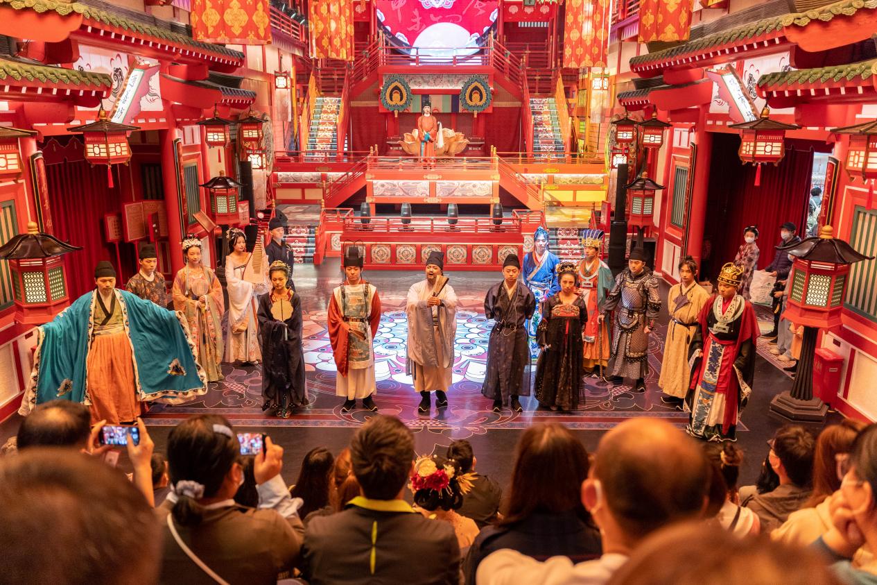 長(zhǎng)安十二時(shí)辰主題街區(qū)演出現(xiàn)場(chǎng)。由長(zhǎng)安十二時(shí)辰主題街區(qū)供圖