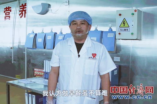 趙志新是一名食品安全員,也是陜西榆林四海食品配送有限責任公司生產班組組長。公司為榆林地區日供應早餐10萬份?!盀榱吮U洗蠹页缘梅判?,我們的工作有一套嚴格流程,從原料采購、加工、留樣到銷售,任何一個環節都不能出問題?!壁w志新說。
