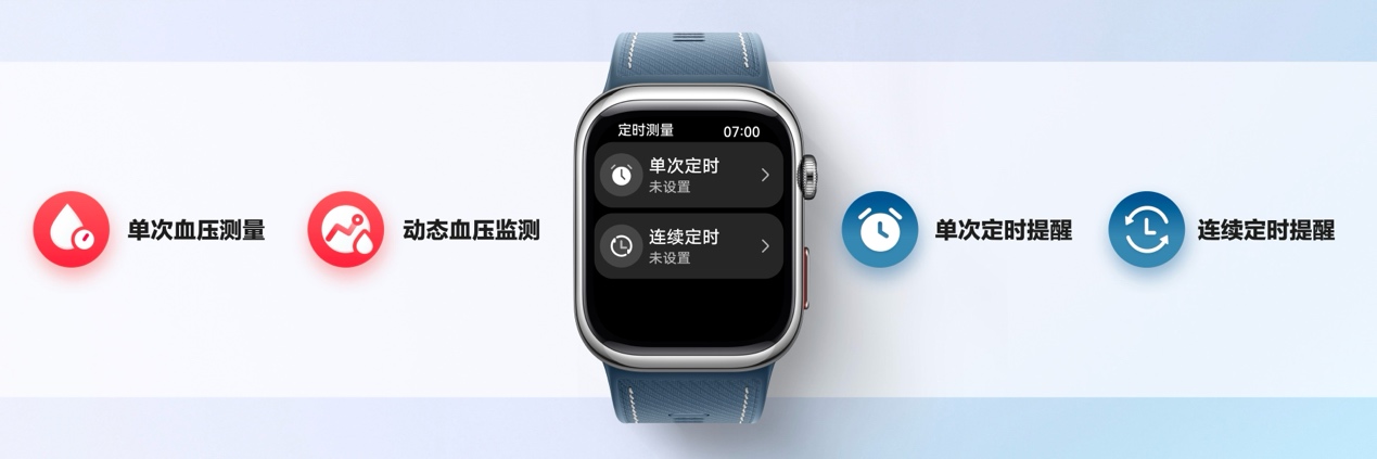 高血壓作為典型慢性病,其診斷與管理對監測數據的完整性要求極高。《中國高血壓防治指南》明確指出,動態血壓監測是高血壓診斷和評估降壓效果的"金標準",這一行業共識凸顯了長期連續監測的重要性。華為WATCH D2 支持醫療級單次與動態血壓監測雙模式,配合新增的單次定時提醒和連續定時提醒功能,讓用戶無論站著、坐著、睡著都能隨時測量,真正實現全天全場景覆蓋。