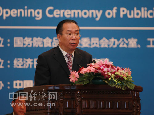 中共中央對外宣傳辦公室、國務院新聞辦公室副主任王國慶在第三屆中國食品安全論壇上致辭 王維亮攝
