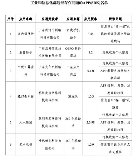 工信部通報27款侵害用戶權益行為的APP(SDK)