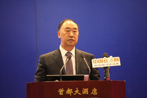 由中國道路交通安全協會、中國汽車技術研究中心和中國經濟網共同主辦的“2013中國道路交通安全論壇”于8月29日在北京首都大酒店舉行。圖為經濟日報社社長徐如俊致辭。中國經濟網 裴小閣 攝影