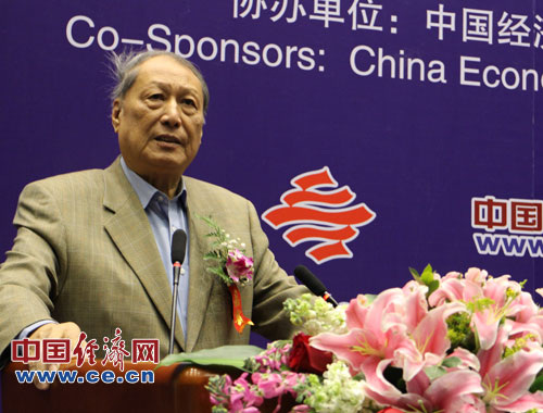 中國科學院預(yù)測科學研究中心1月26日(周五)在北京中科院數(shù)學與系統(tǒng)科學研究院舉辦“2013年中國經(jīng)濟預(yù)測發(fā)布與研討會”。圖為中國科學院預(yù)測科學研究中心學術(shù)委員會主任 第七、八屆全國人大副委員長成思危致辭。中國經(jīng)濟網(wǎng)楊瀟/攝影