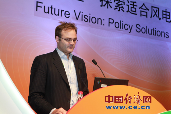 所謂的滲透率和普及率,在全國來看確實很低,但我們看一下內蒙古等地區,在國際標準來看它的滲透率也是很高的,去年內蒙古的風電滲透率可以與德國相比,風能占總裝機容量的16%。在中國的管理問題更加突出,因為理論上講這樣地方的風力資源更有優勢,在發展風電的時候要更好地統籌考慮。在內蒙古火電站和風場怎樣進行統籌考慮,像德國這樣更好的并網。因為德國在并網和利用風能方面有更多的經驗,德國的一些工作已經走在了中國前面,有些事情在德國已經順理成章,在中國還沒有這樣。我們發現鑒于中國已經進行的開發活動,像內蒙古這樣風力資源充沛的地方,在近期可能會成為世界上風能普及率最高的地方之一,成為全世界的佼佼者。在內蒙古這樣的地方,占中國總體風力市場的35%左右。在這樣的地區市場上,風力資源非常充沛,與風能相抗的只能是煤電。因此,我們面臨整合的問題。也就是怎樣將風電和煤電進行整合。一般來說煤電占500兆瓦,風電也需要有類似的裝置,必須保證24小時都能夠利用風能,這樣就可以保證風電的供應。如果有400兆瓦的風機容量得到安裝,并進行有效運作,確實可以解決相關問題。