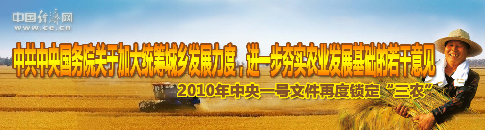 2010年中央一號文件以“加大統(tǒng)籌城鄉(xiāng)發(fā)展力度、進(jìn)一步夯實(shí)農(nóng)業(yè)農(nóng)村發(fā)展基礎(chǔ)”為主題,充分體現(xiàn)了中央關(guān)于加強(qiáng)“三農(nóng)”工作的一貫要求,指明了鞏固和發(fā)展農(nóng)業(yè)農(nóng)村經(jīng)濟(jì)好形勢的根本方向。
